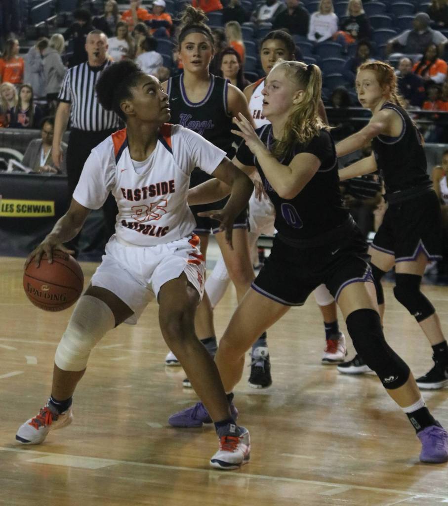 Eastside Catholic bolted out to an 8-0 lead, but LW answered with an 11-0 run, which was capped by field goals from Jen Estes and Sophia Liesse with 3:31 left in the first quarter. By quarter’s end, LW owned a 25-17 lead with 10 points from Liesse, who finished with 22 points.