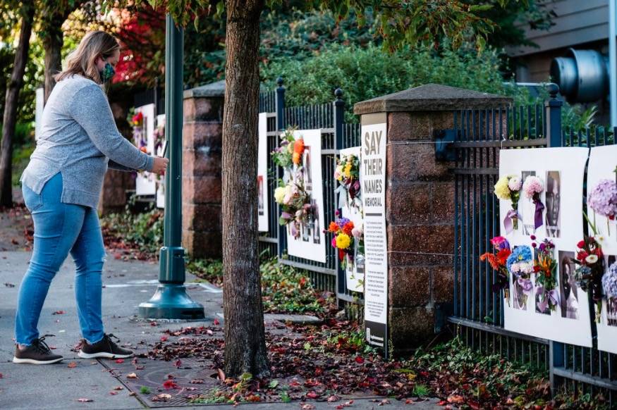The Say Their Names Memorial was installed on Oct. 20 at St. John’s Episcopal Church in Kirkland, and will be open to the public through November. Masks and social distancing are required.