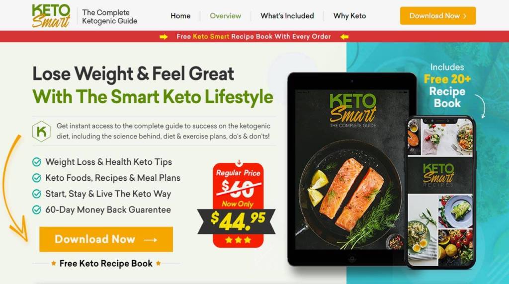 Keto Smart is a complete guide written to help achieve weight loss success with the ketogenic diet. The in-depth digital guide contains all the information about the science behind keto, details on a diet itself, workout routines that should be followed, and how to start a keto diet, and what to expect from the experience.