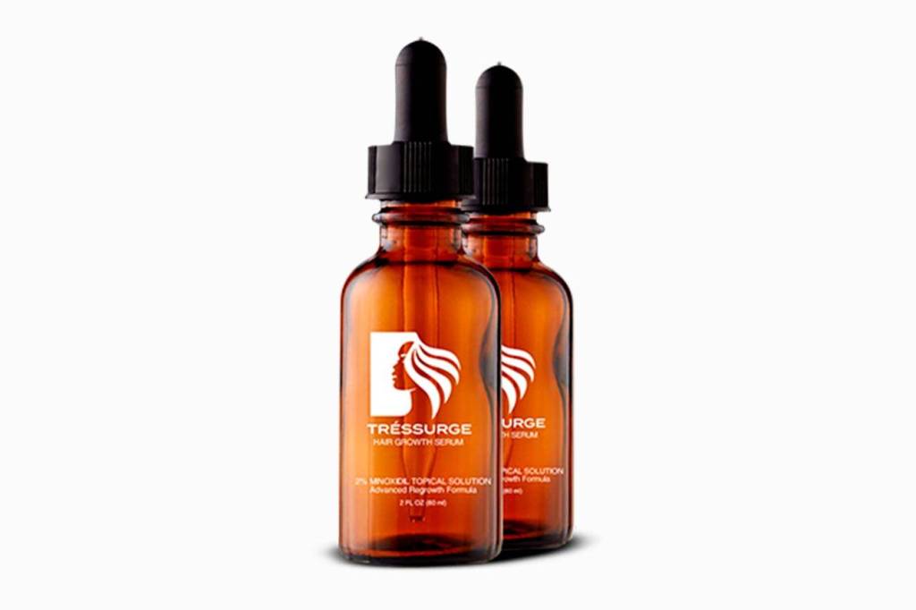 Tressurge is a dermatologist-formulated topical hair product that works to restore and maintain good hair health. According to the official website, the formula is designed to prevent hair loss, improves hair growth, and helps users grow thicker hair. Tressurge contains three active ingredients, namely anagen, catagen, and telogen, that work together to influence three stages of hair growth.