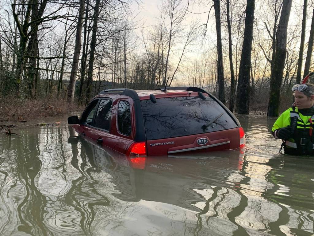 “They followed the suspect vehicle into Fall City where the suspect drove the car into a street that was covered in water and ended up in over four feet of water, at which point he surrendered,” said Black.