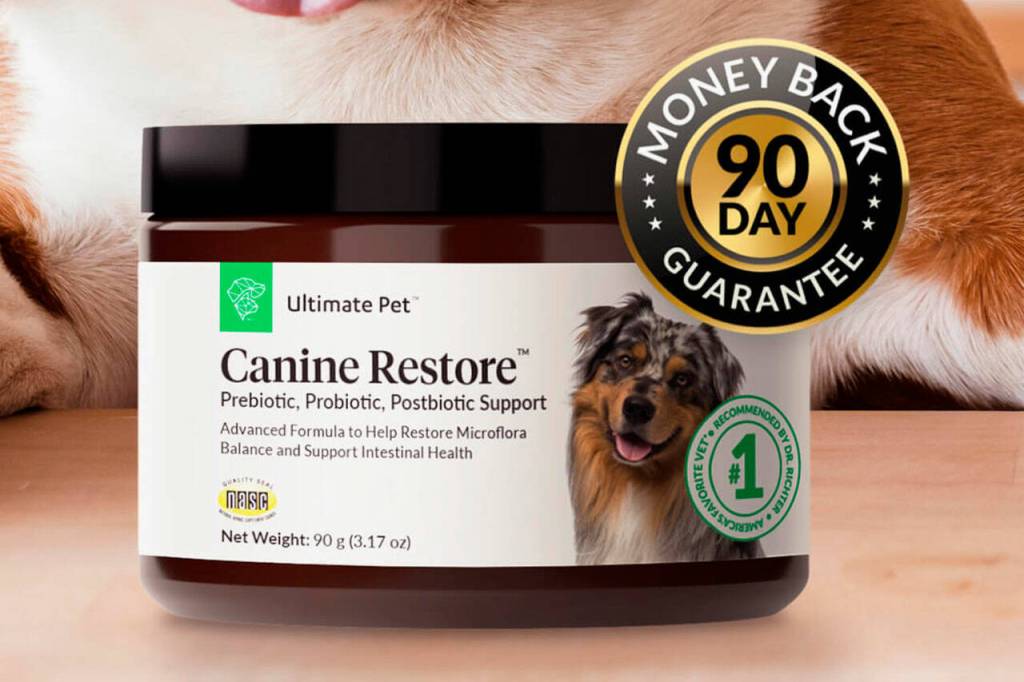 Canine Restore is a supplement from Ultimate Pet® designed to support your dog’s overall health using prebiotics, probiotics, and postbiotics.