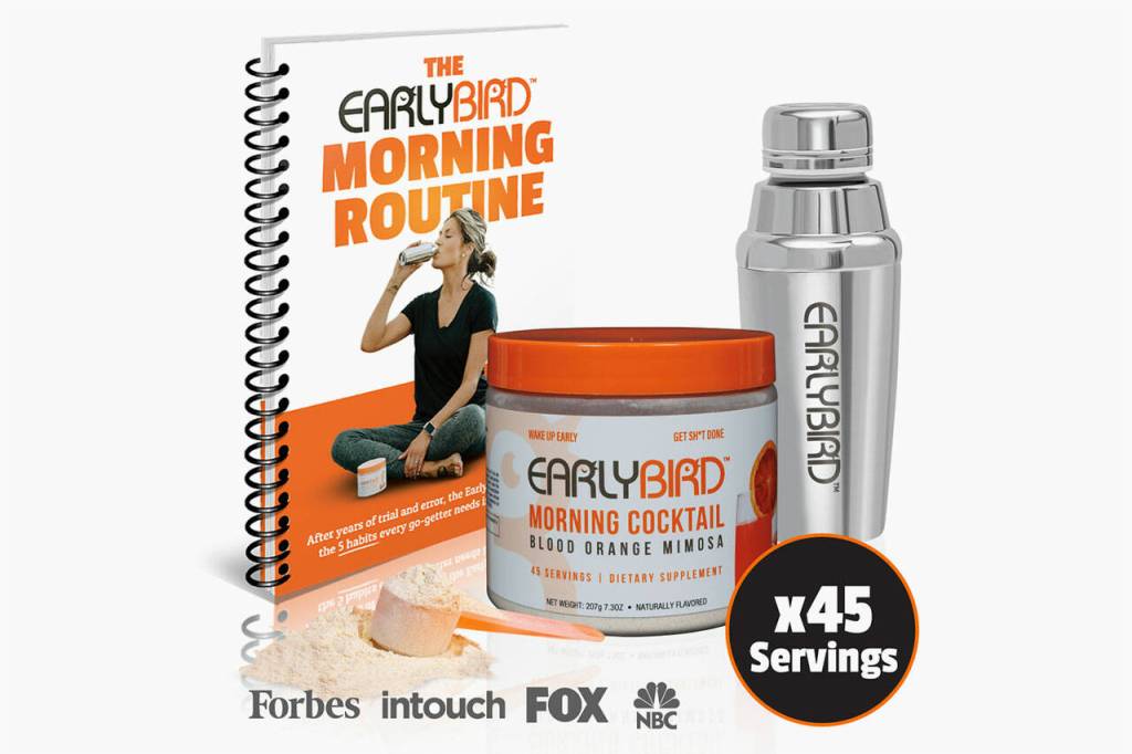 Additionally, every order comes with free shipping, a shaker cup, and an e-book, “The EarlyBird Morning Routine,” to get you started on the path to being an early bird who enjoys your morning.
