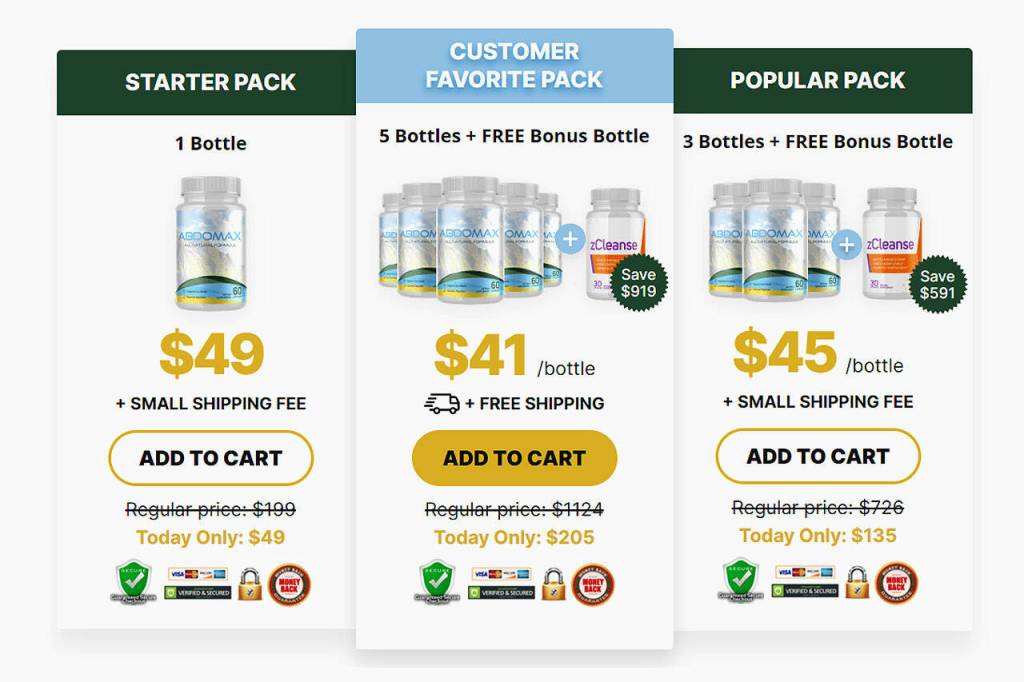 A one-month supply of Abdomax has been packed into each box. The creators of this supplement advise long-term usage because it will take time for pepsinogen levels to replenish. The following pricing has been decided upon to encourage such purchases without breaking the bank: