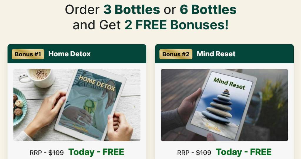 - Buy six bottles of TropiSlim formula: $246 + Free shipping + 2 Free Bonuses