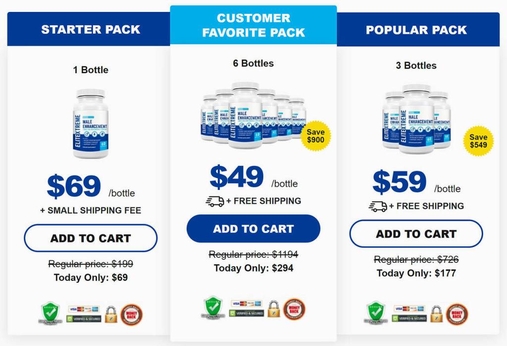 Elitextreme Male Enhancement dietary supplement is available on their official website at discounted prices. The supplement is available in three pricing options. These include: