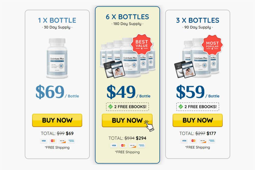 Starter Package: You can choose a 1-bottle supply of Quietum Plus priced at $69 per bottle. This package includes free shipping to your location.