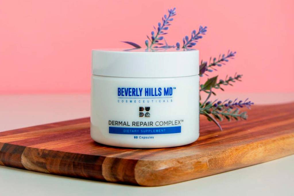 Developed by skincare experts at Beverly Hills MD, Dermal Repair Complex is a dietary supplement designed to address the signs of aging that manifest on the skin. This formula focuses on multiple facets of skin aging, including collagen depletion, moisture loss, and skin dullness.