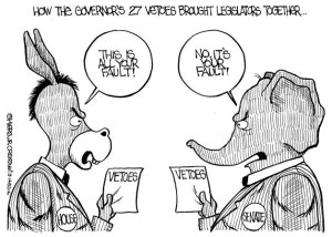 How the governor's 27 vetoes brought legislators together... | Cartoon for March 14