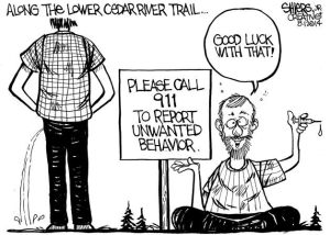 Please call 911 to report unwanted behavior | Cartoon for Aug. 17