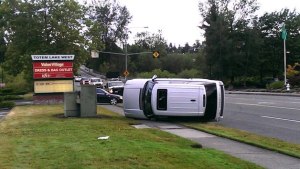 A Range Rover rolled over near the Value Village in Kirkland early Friday morning.