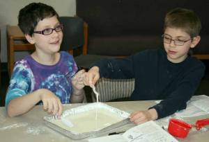 Kirkland youngsters played with goop, created slime, flubber, a foam machine, bleeding cabbage and more on Monday