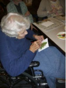 Mildred Bruns with Áegis of Kirkland puts her finishing touches on a painting that will be used for the Wrap A Senior In Love Campaign.