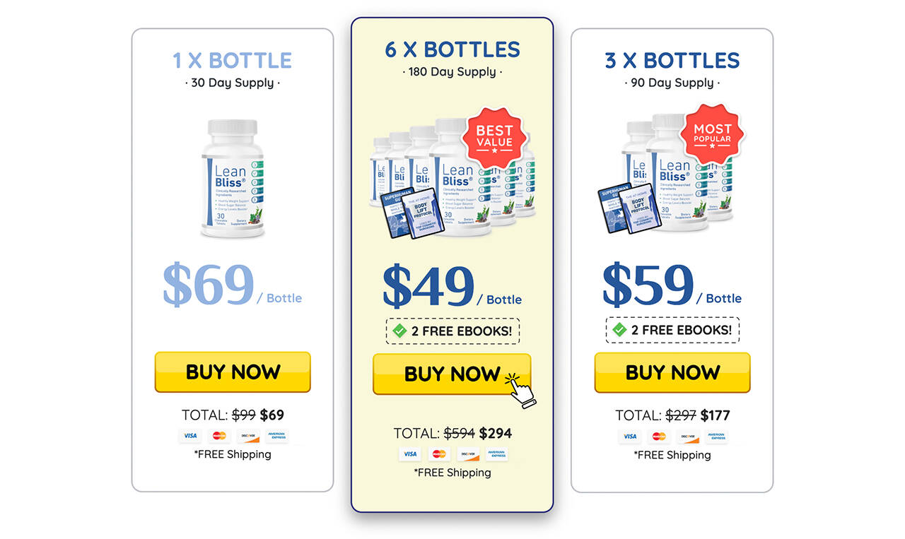 For those committed to long-term well-being, LeanBliss extends cost-effective options. The three-bottle package is priced at $177, allowing customers to save on a per-bottle basis. Opting for the six-bottle package offers even greater value, priced at $294.