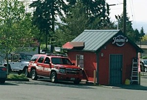 An emergency response vehicle is seen at a bikini barista on Rose Hill.