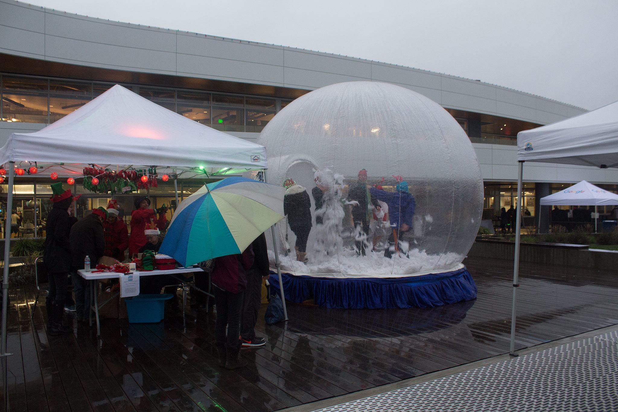 In its second year, Google Lights attendees also had the opportunity to step inside a human-size snowglobe, and the free event also included caroling and hot cocoa.