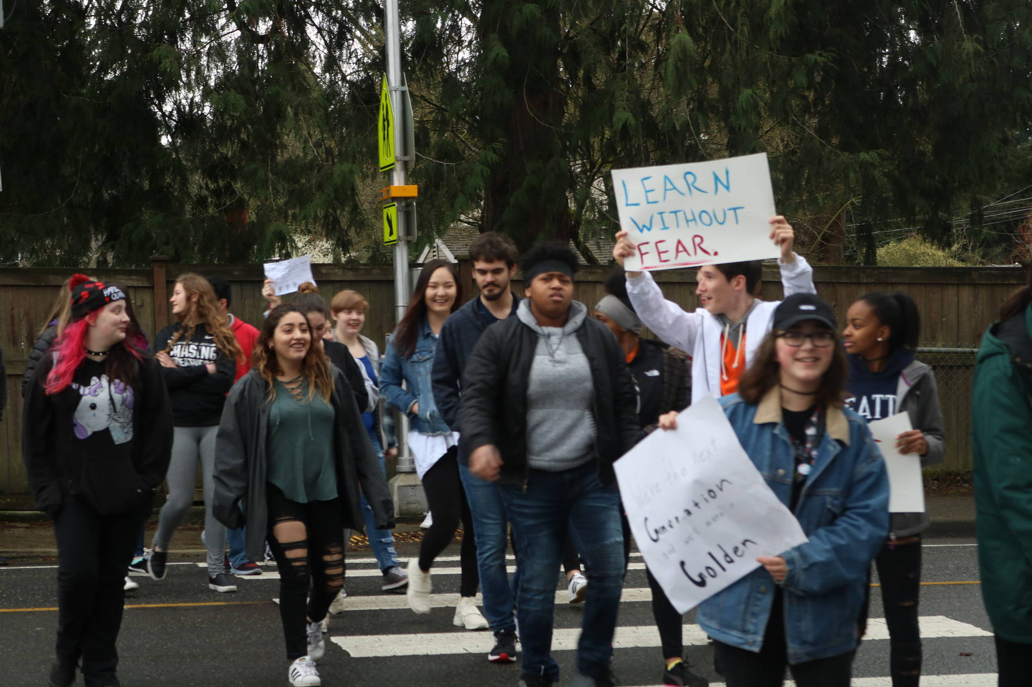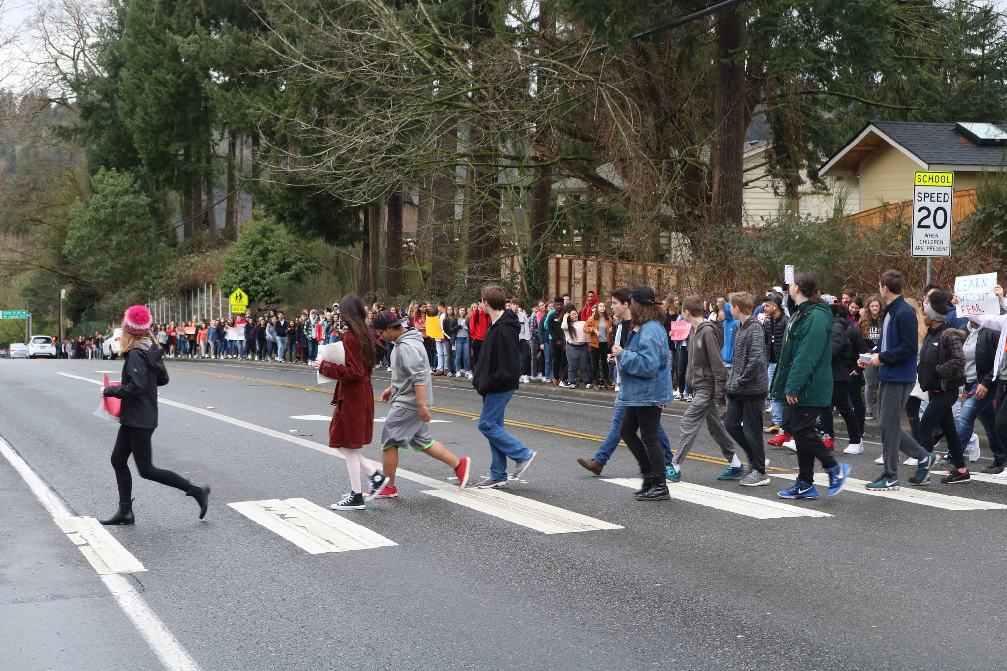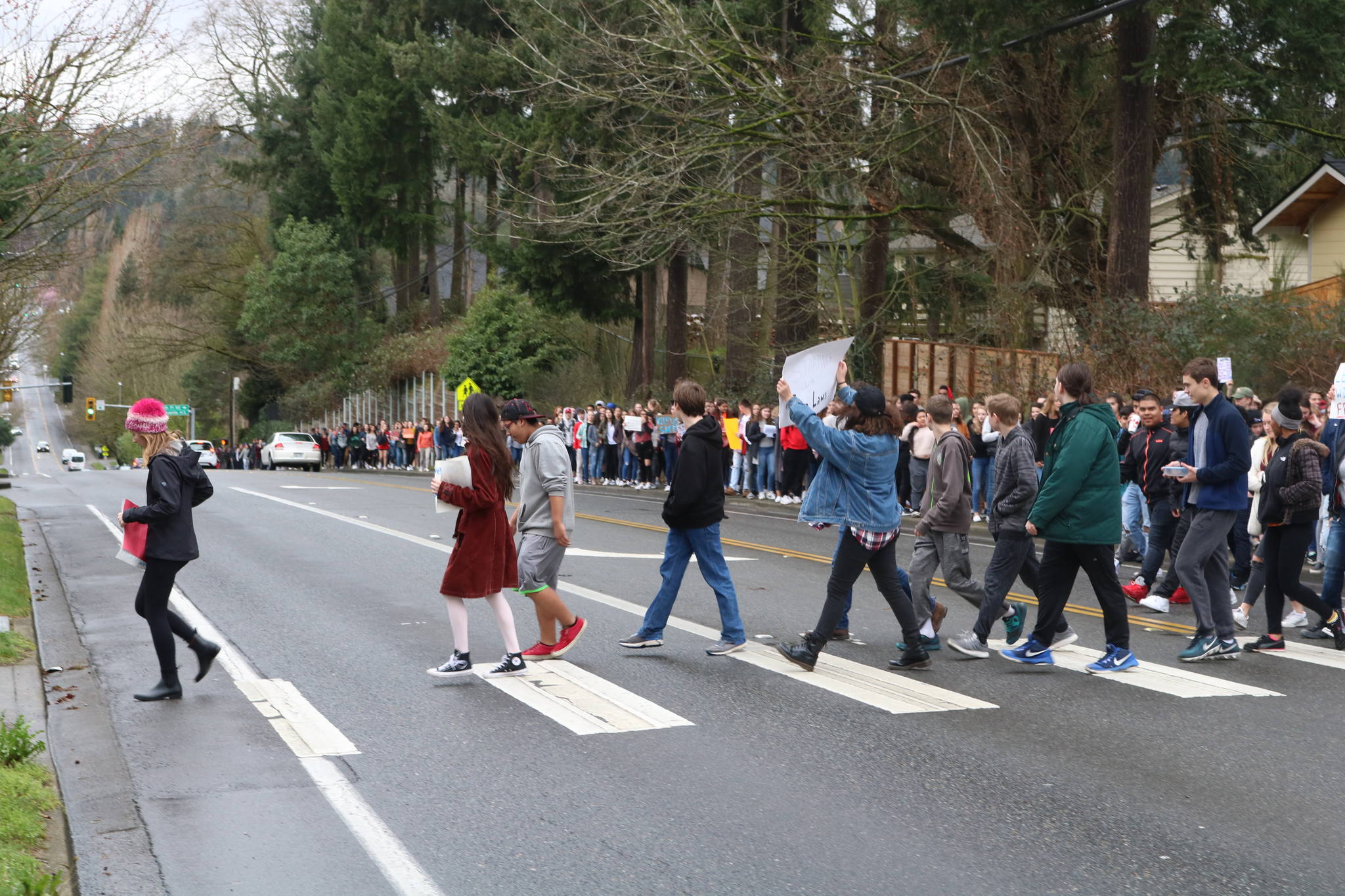 Juanita students took to the streets Wednesday morning in solidarity with thousands of students nationwide who are protesting gun violence and advocating for change.