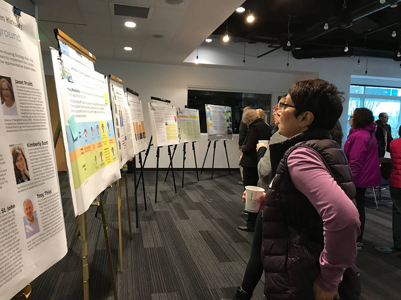 The morning started with participants looking over display boards with information the advisory group has gathered so far. Once the formal programming began, people broke up into small groups for discussions on three specific topics: housing supply and diversity, affordable housing and neighborhood character. Participants had the opportunity to discuss two of the topics for about 45 minutes each.
