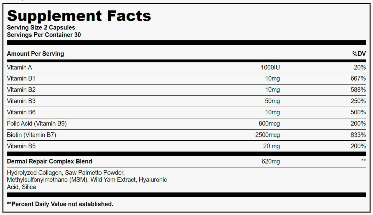Developed by skincare experts at Beverly Hills MD, Dermal Repair Complex is a dietary supplement designed to address the signs of aging that manifest on the skin. This formula focuses on multiple facets of skin aging, including collagen depletion, moisture loss, and skin dullness.