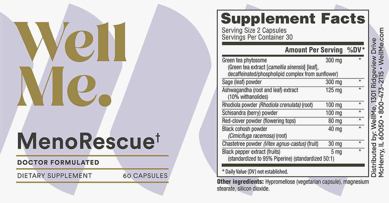 WellMe MenoRescue is a dietary supplement designed to alleviate menopausal symptoms by balancing hormones and supporting overall health.