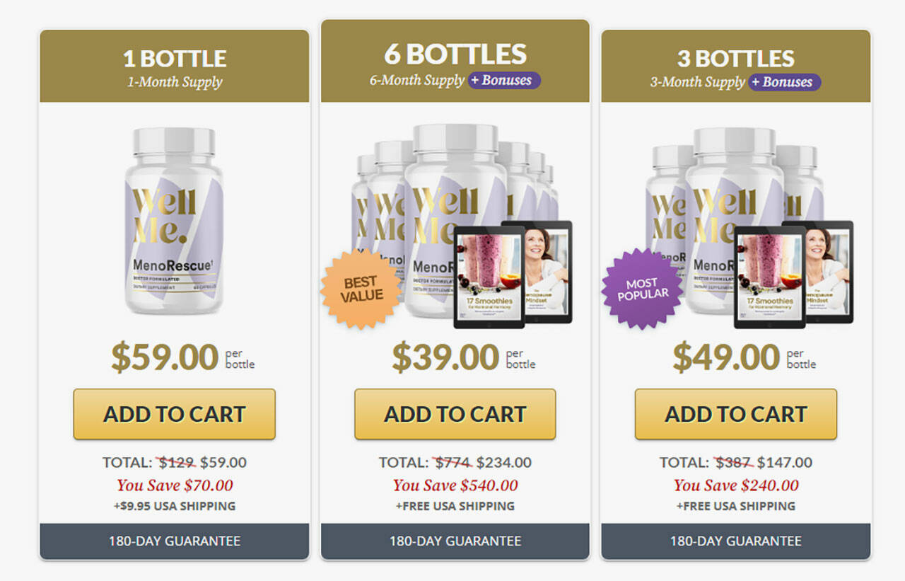 Understanding that everyone’s journey with MenoRescue might be different, the pricing is structured to accommodate various needs and preferences. Whether you’re just starting and want to test the waters with a single bottle or you’re ready to commit to a longer-term plan, there are options available: